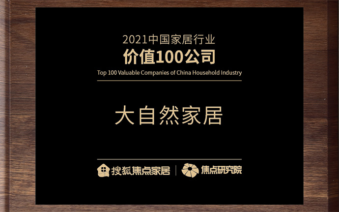 大自然榮獲“2021中國家居行業價值100公司”|見證原力,用綠色守護生活