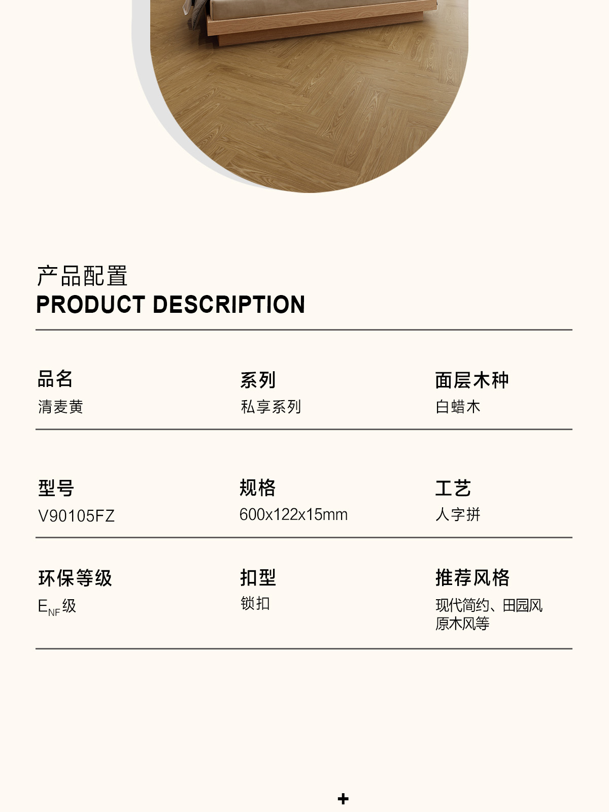 產(chǎn)品名稱/型號(hào) 清麥黃V90105FZ(人字拼)