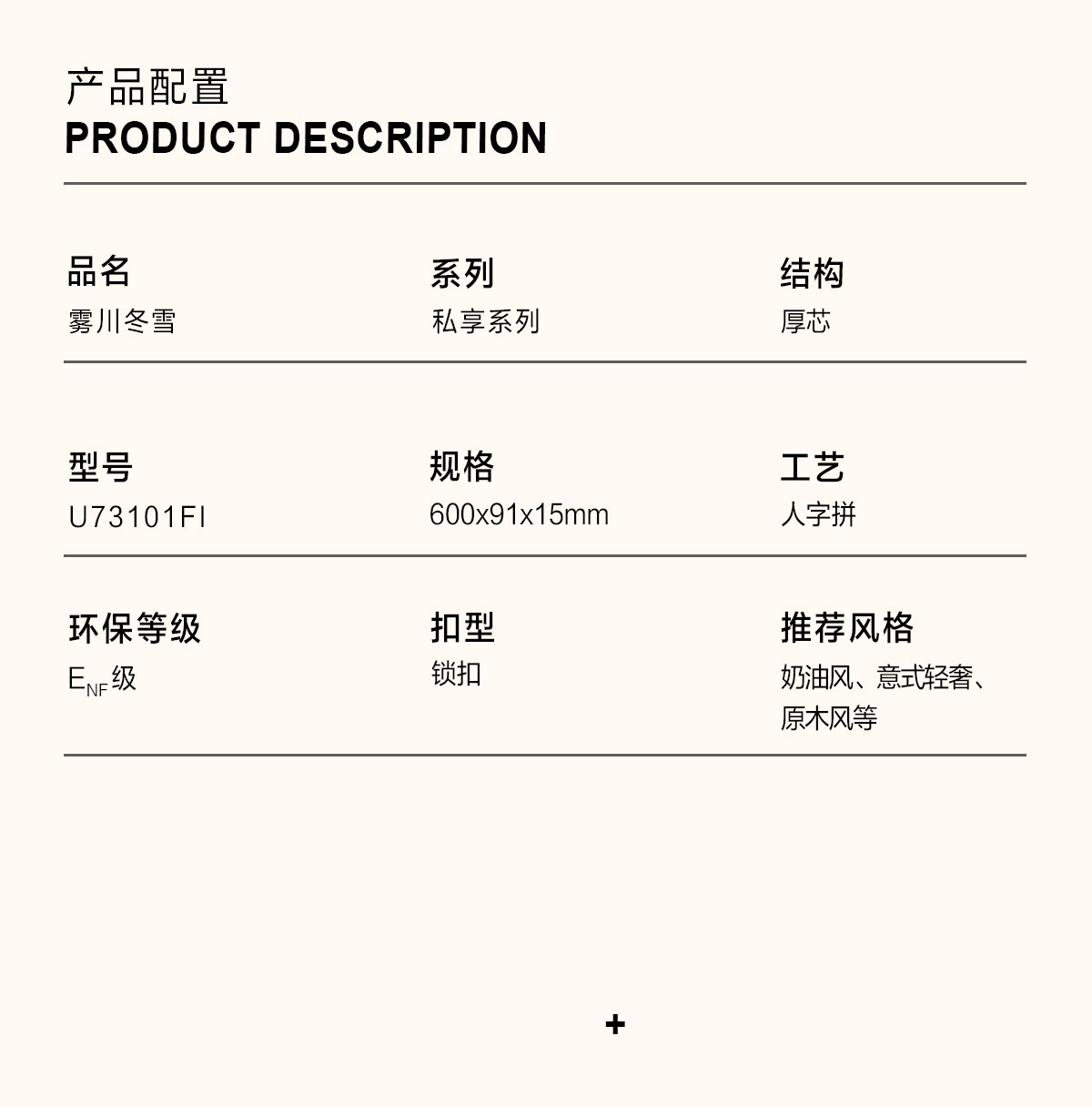 | 產(chǎn)品名稱/型號(hào) | 霧川冬雪 U73101FI(人字拼) | ? |
