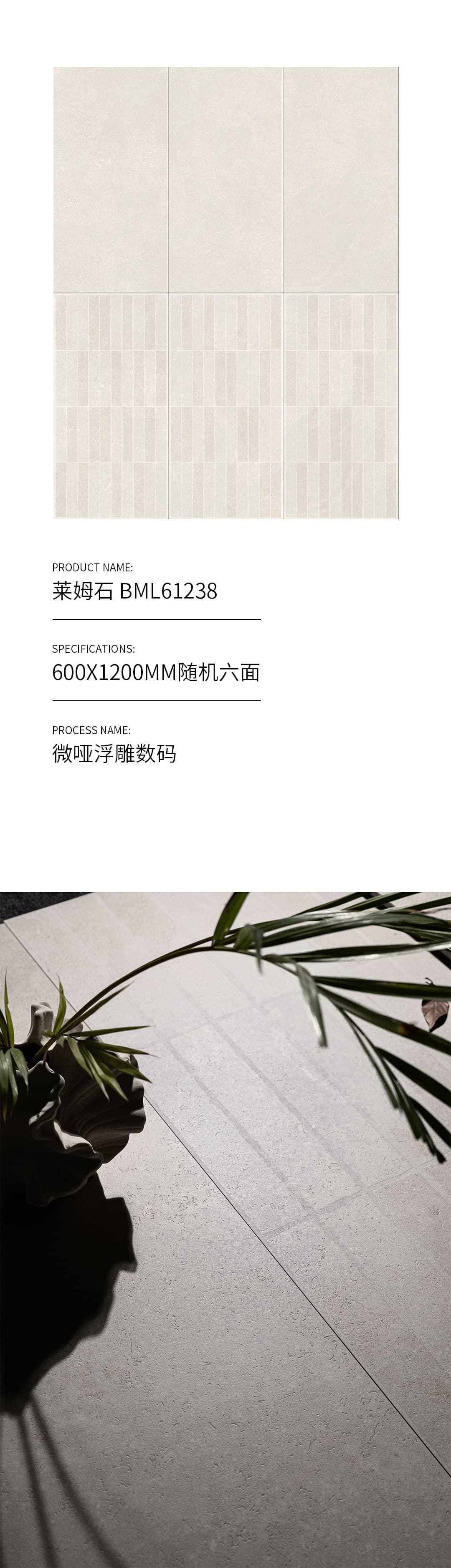 | 產品特性 | 表面柔和,防污效果強,防滑R10指標高,抗折強度好 |